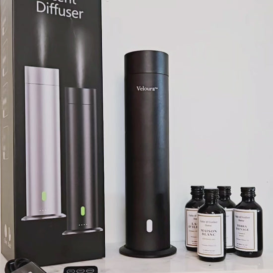 Minimalist and powerful, Veloura is designed to blend into any interior — modern, traditional, or boutique. Crafted in brushed aluminium, with no harsh mist, messy water, or heating elements, it delivers scent the way luxury hotels do: clean, even, and effortless.